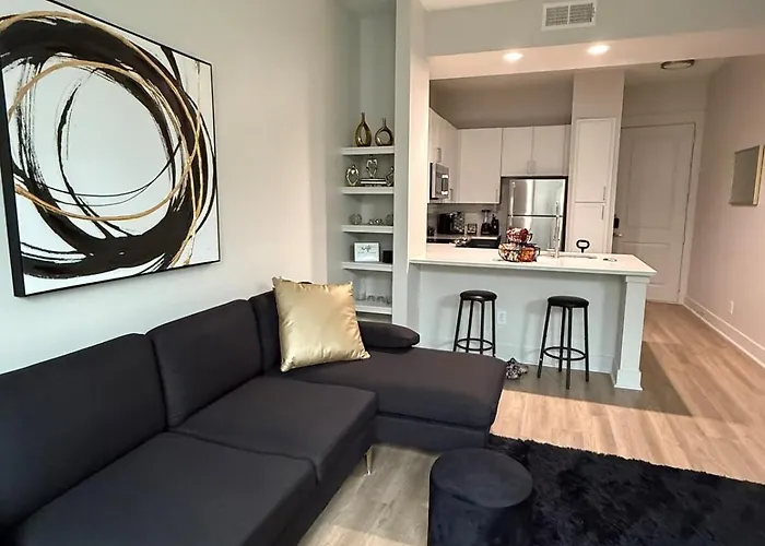 The accommodations at the Hollywood House Of Luxe Deep Ellum Apartment Dallas are designed with comfort and style in mind. Each room features contemporary décor and high-end amenities that promise a restful retreat after a day of exploring the vibrant neighborhood. Guests can enjoy spacious layouts that include fully equipped kitchens, ideal for those wishing to indulge in self-catering or simply unwind with a home-cooked meal.